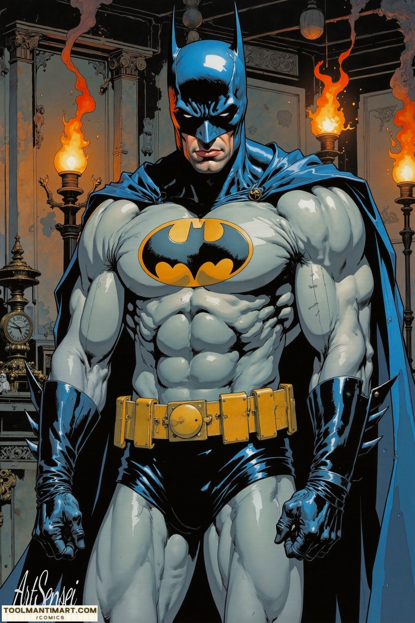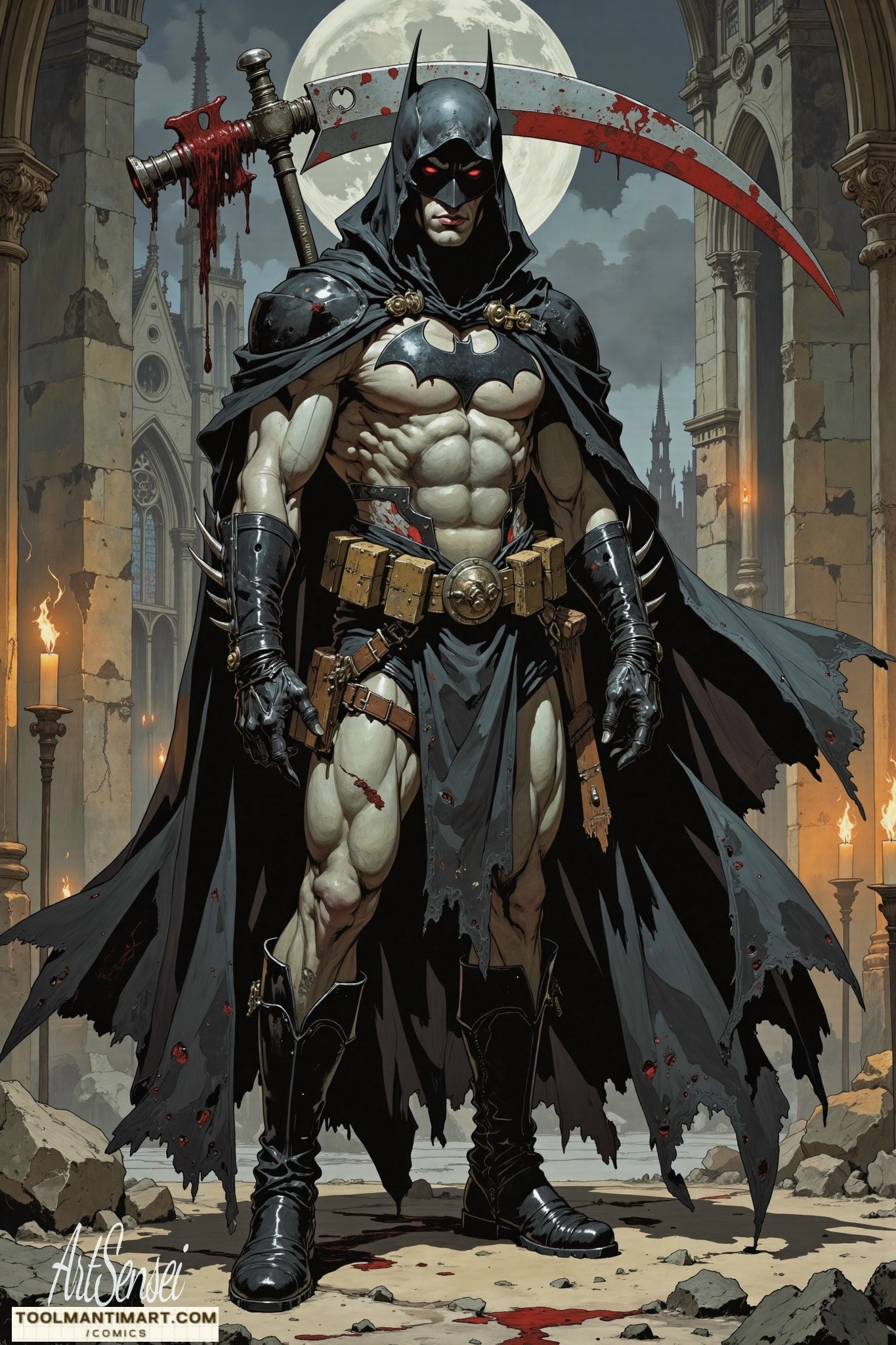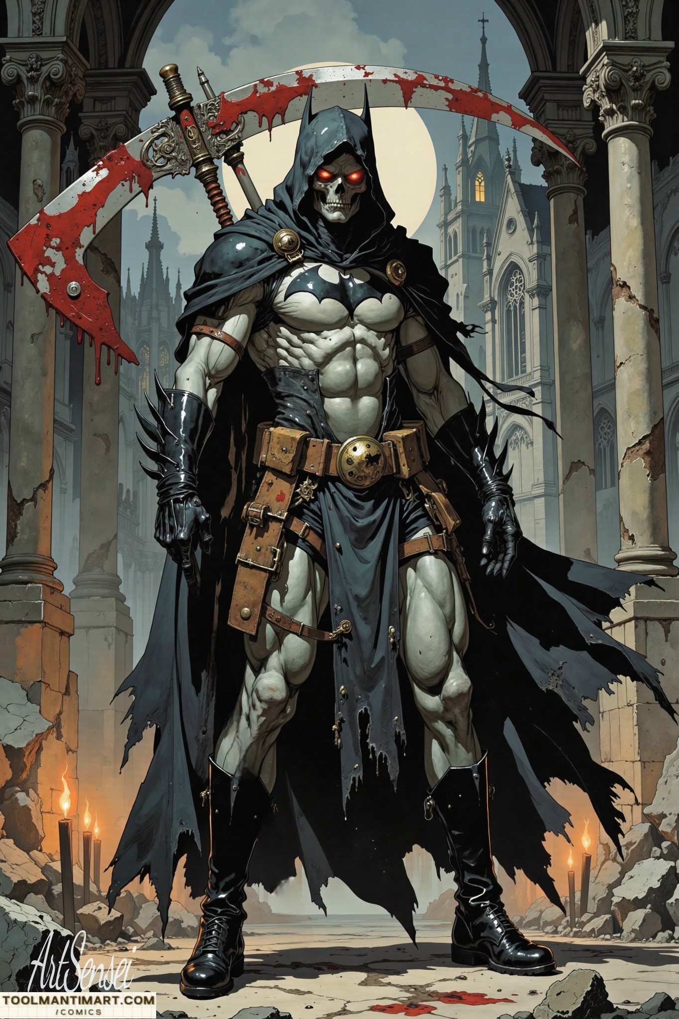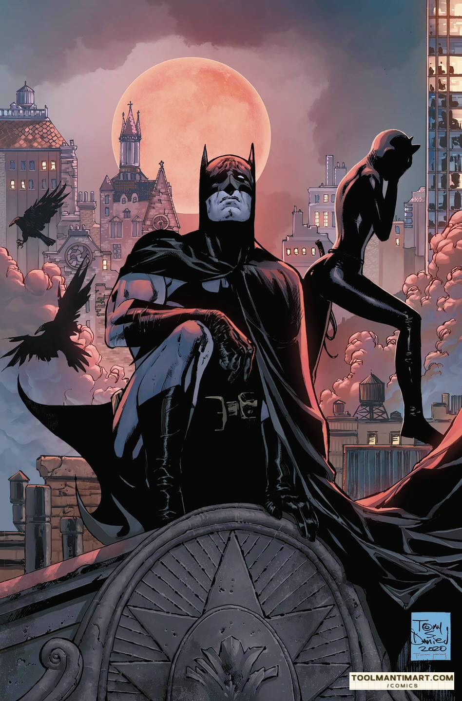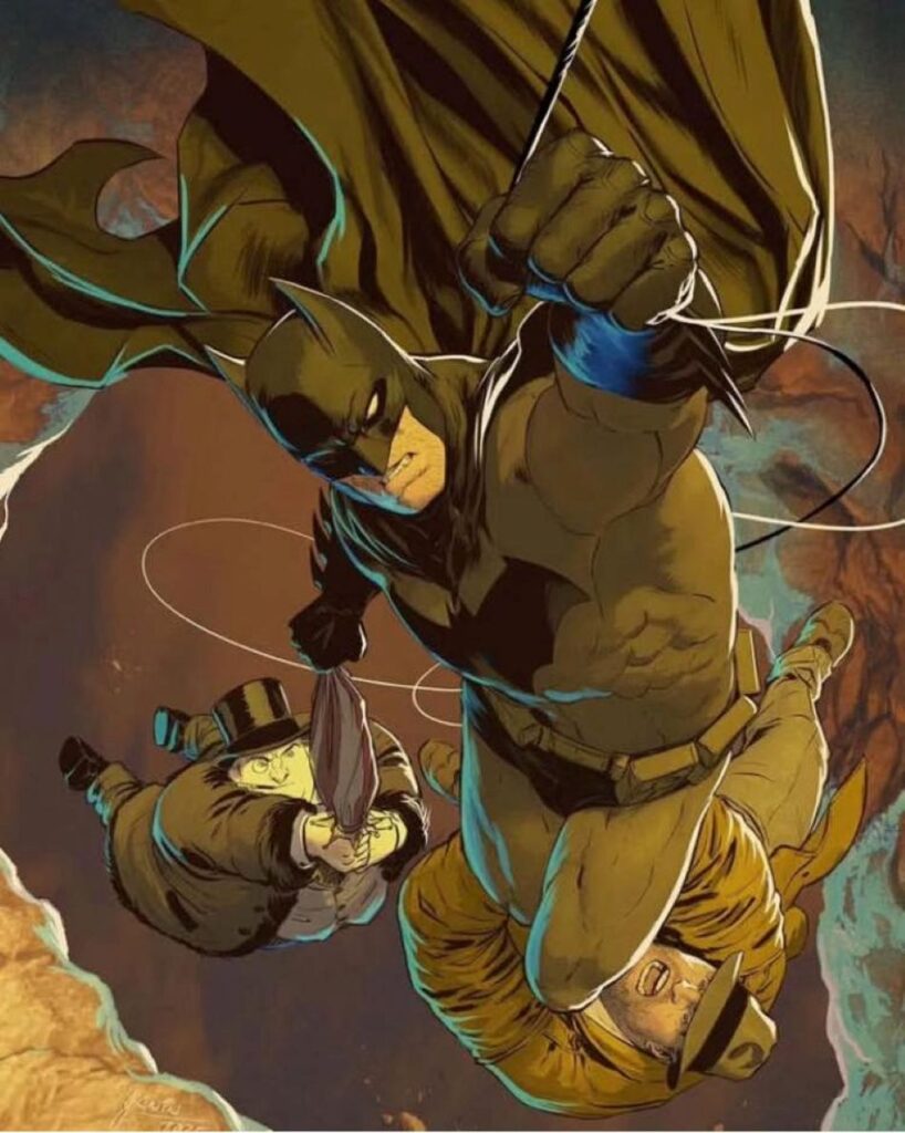Batman[b] is a superhero who appears in American comic books published by DC Comics. He was created by the artist Bob Kanean was created by the artist Bob Kane and writer Bill Finger, and debuted in the 27th issue of the comic book Detective Comics on March 30, 1939. In the DC Universe, Batman is the alias of Bruce Wayne, a wealthy American playboyphilanthropist, and industrialist who resides in Gotham CityHis origin story features him swearing vengeance against criminals after witnessing the murder of his parents, Thomas and Martha, as a child, a vendetta tempered by the ideal of justice. He trains himself physically and intellectually, crafts a bat-inspired persona, and monitors the Gotham streets at night. Kane, Finger, and other creators accompanied Batman with supporting characters, including his sidekicks Robin and Batgirl; allies Alfred Pennyworth and James Gordon; love interest Catwoman; and foes such as the Penguin, the RiddlerTwo-Face, and his archenemy, the Joker.
