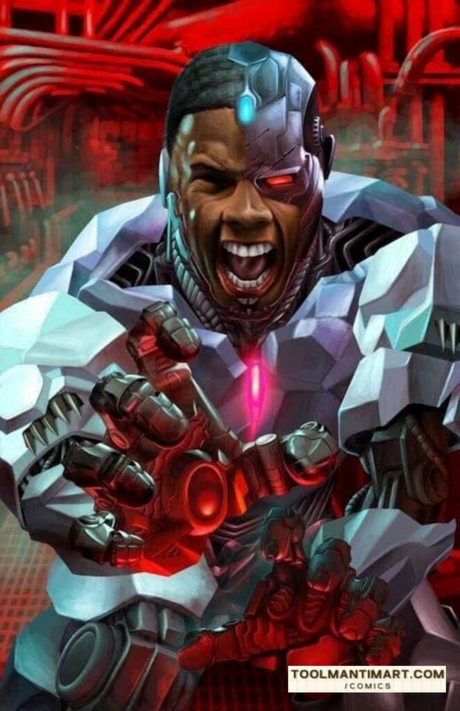 Cyborg (Victor “Vic” Stone) is a superhero appearing in American comic books published by DC Comics. The character was created by writer Marv Wolfman and artist George Pérez, and first appeared in an insert preview in DC Comics Presents #26 (October 1980).[1] Originally known as a member of the Teen Titans,[2] Cyborg was established as a founding member of the Justice League in DC’s 2011 reboot of its comic book titles, replacing Martian Manhunter.
