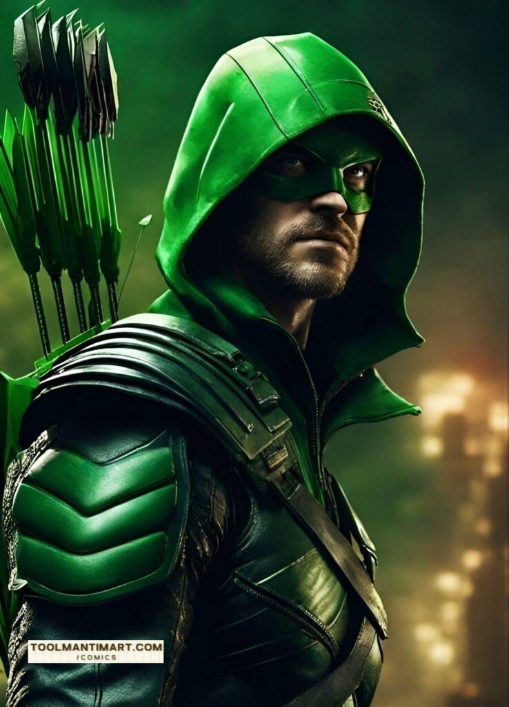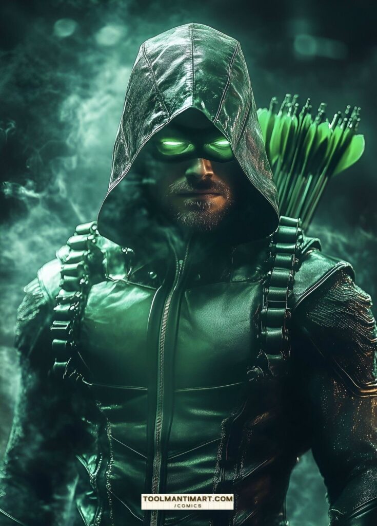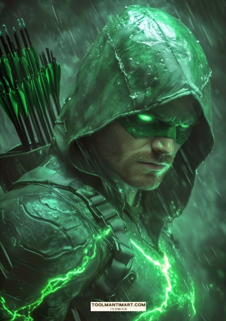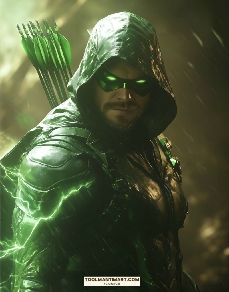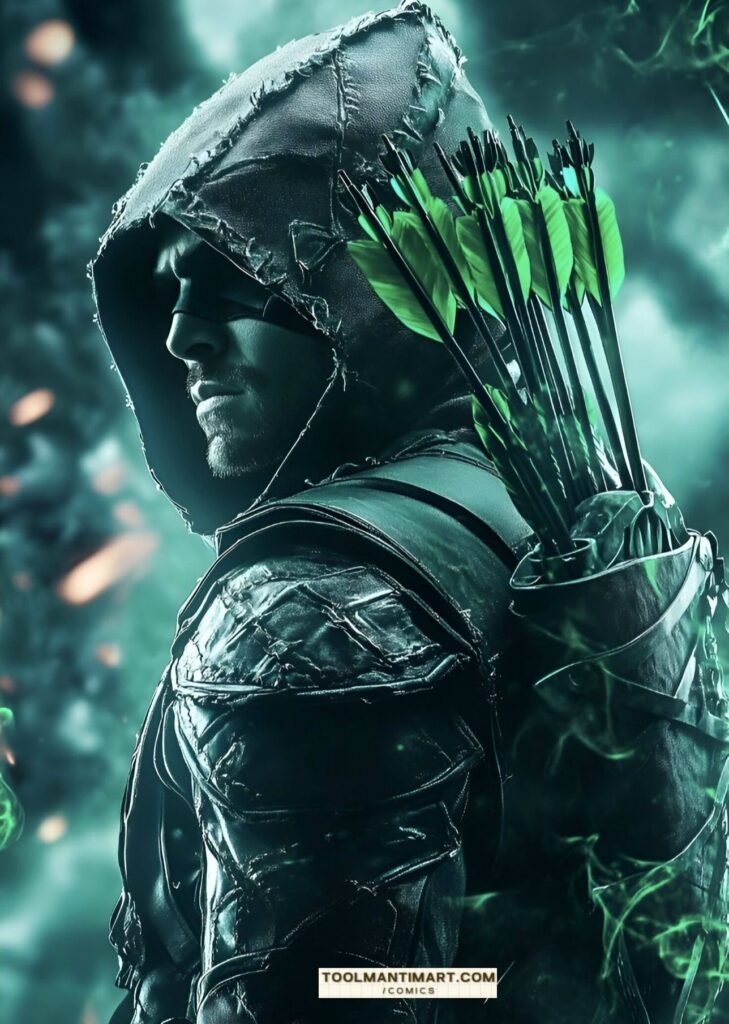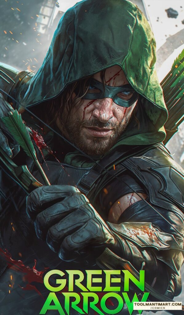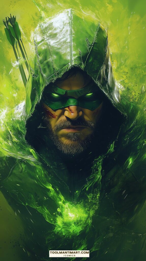 His real name is Oliver Jonas Queen, a wealthy businessman, owner of Queen Industries, and a well-known celebrity in Star City. He uses this position to hide the fact that he is Green Arrow.[1] Partly inspired by Robin Hood, Green Arrow is an archer who uses his skills to fight crime in his home cities of Star City and Seattle, as well as alongside his fellow superheroes as a member of the Justice League. The world’s greatest archer, as well as a competent swordsman and martial artist, Green Arrow deploys a range of trick arrows (in contemporary times, they are referred as “specialty arrows”[2]) with various special functions, such as glue, explosive-tipped, grappling hook, flash grenade, tear gas, and even kryptonite arrows for use in a range of special situations.
