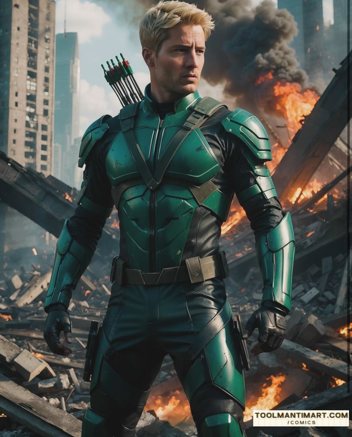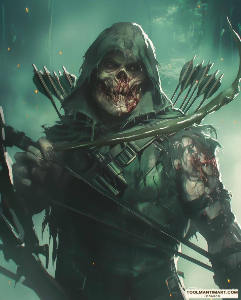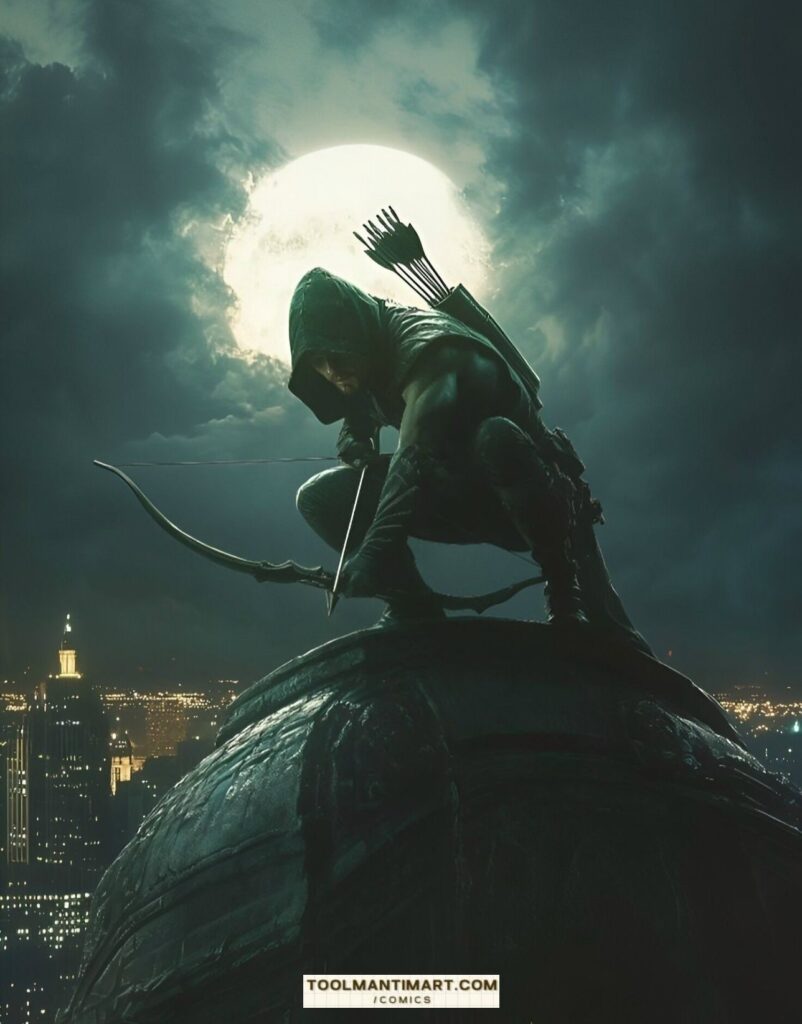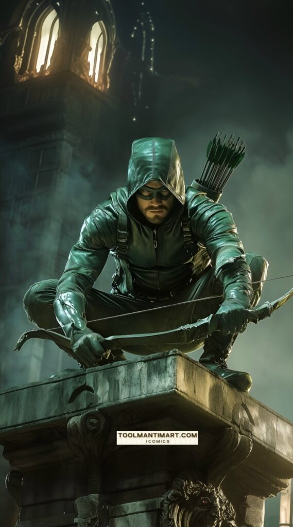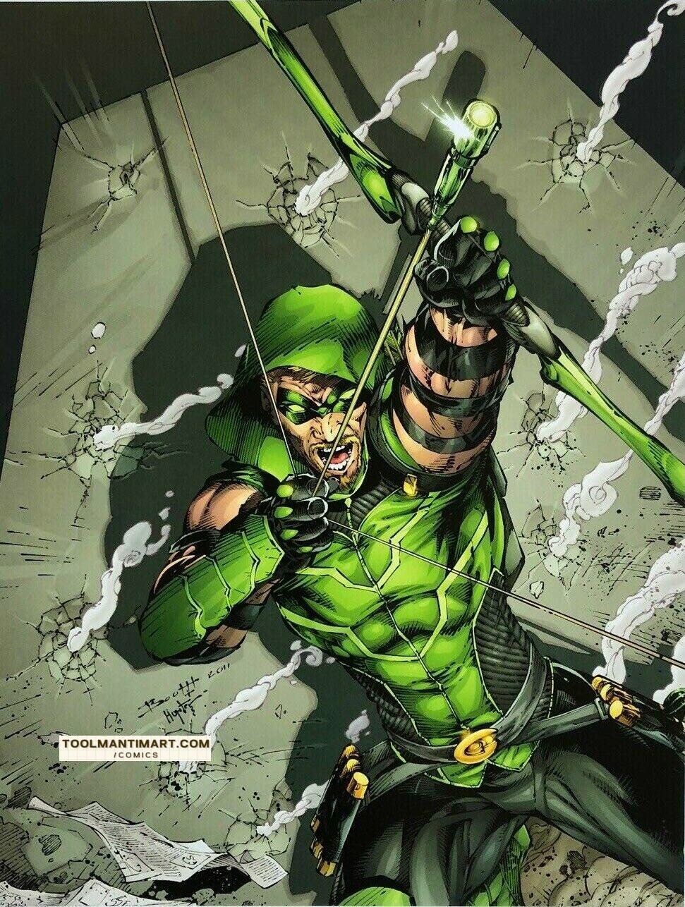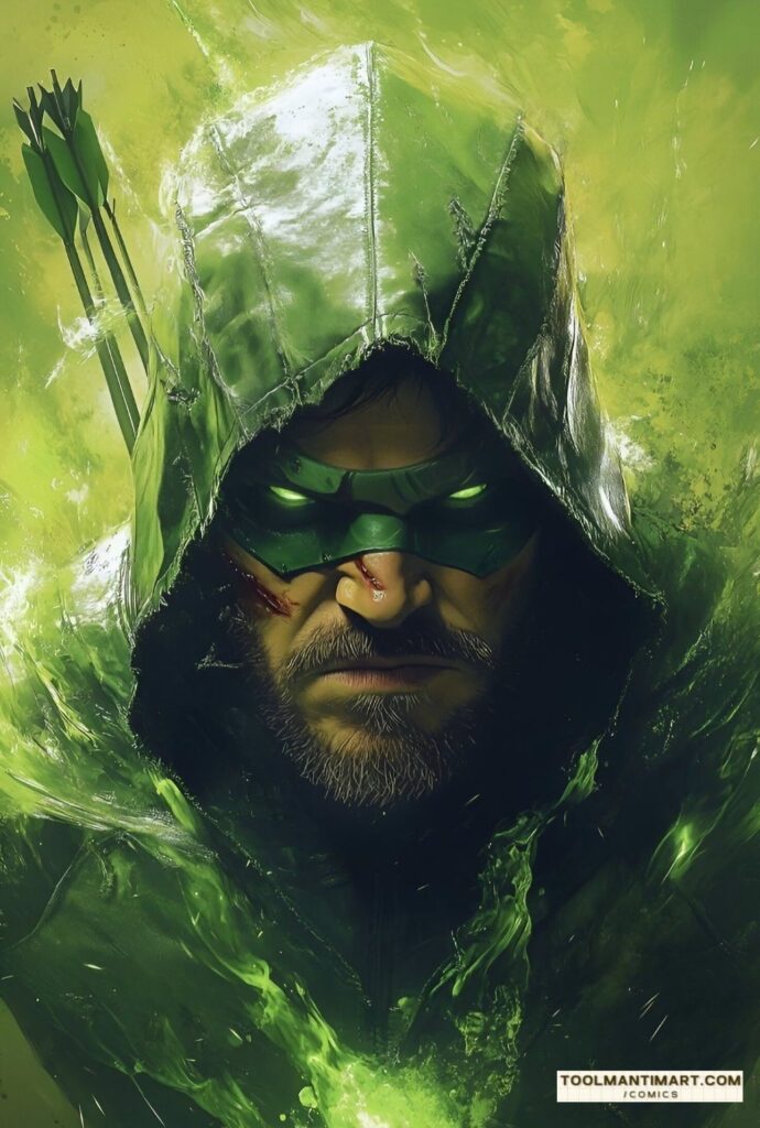 His real name is Oliver Jonas Queen, a wealthy businessman, owner of Queen Industries, and a well-known celebrity in Star City. He uses this position to hide the fact that he is Green Arrow.[1] Partly inspired by Robin Hood, Green Arrow is an archer who uses his skills to fight crime in his home cities of Star City and Seattle, as well as alongside his fellow superheroes as a member of the Justice League. The world’s greatest archer, as well as a competent swordsman and martial artist, Green Arrow deploys a range of trick arrows (in contemporary times, they are referred as “specialty arrows”[2]) with various special functions, such as glue, explosive-tipped, grappling hook, flash grenade, tear gas, and even kryptonite arrows for use in a range of special situations.