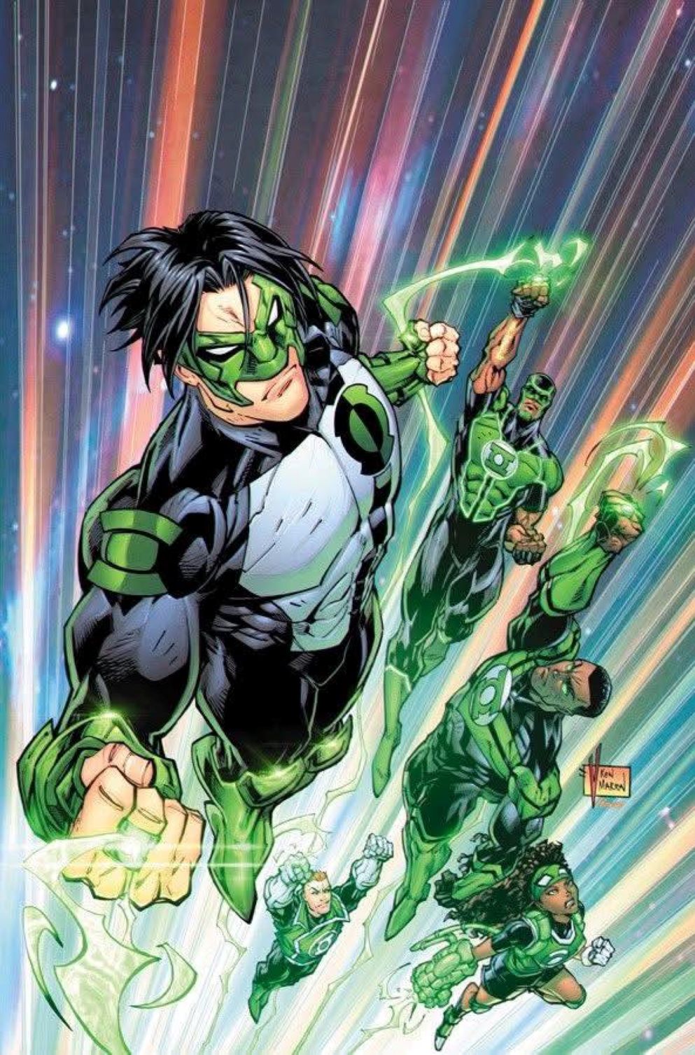 Green Lantern is the name of several superheroes appearing in American comic books published by DC Comics. They fight evil with the aid of rings that grant them a variety of extraordinary powers, all of which come from imagination, fearlessness, and the electromagnetic spectrum of emotional willpower.[1] The characters are typically depicted as members of the Green Lantern Corps, an intergalactic law enforcement agency.