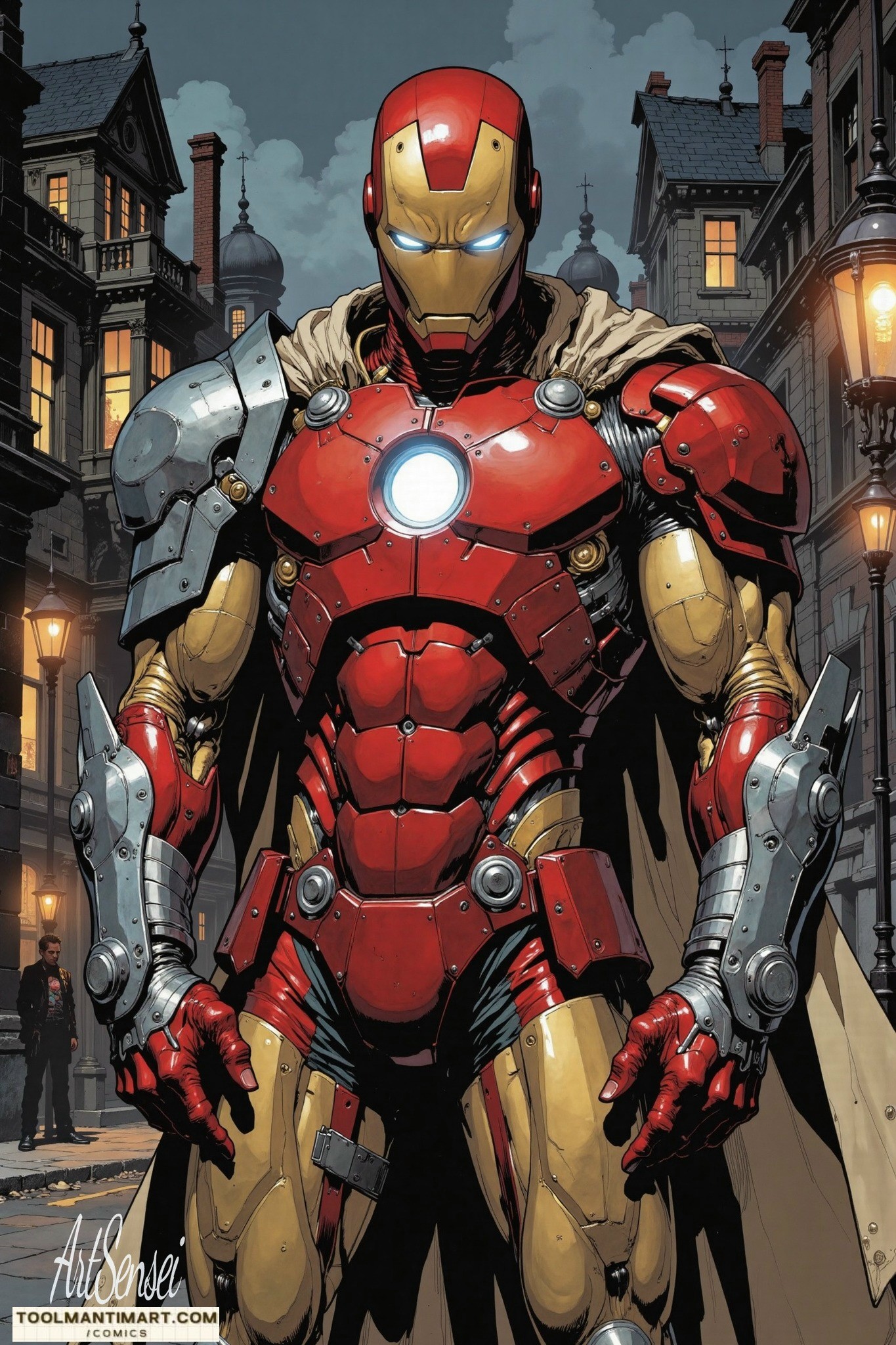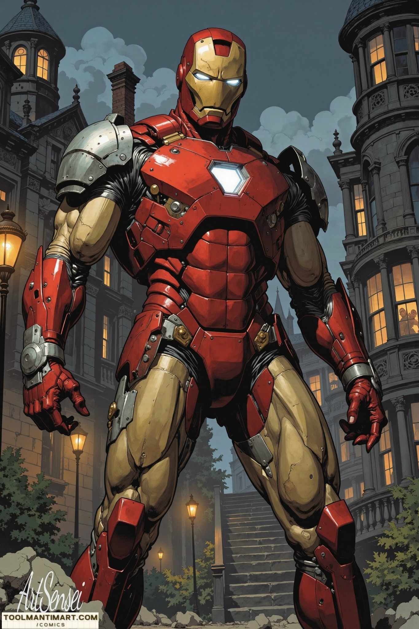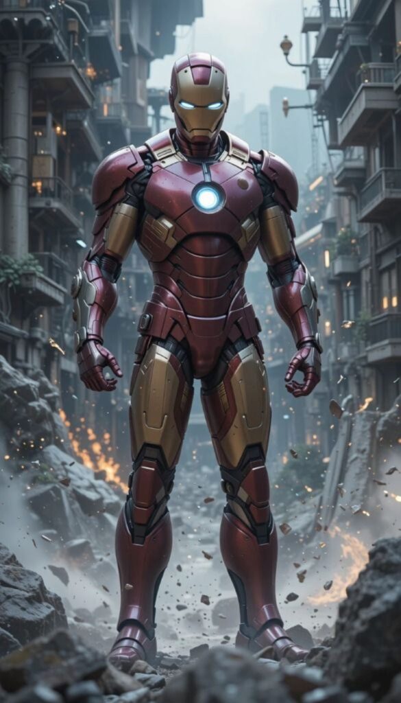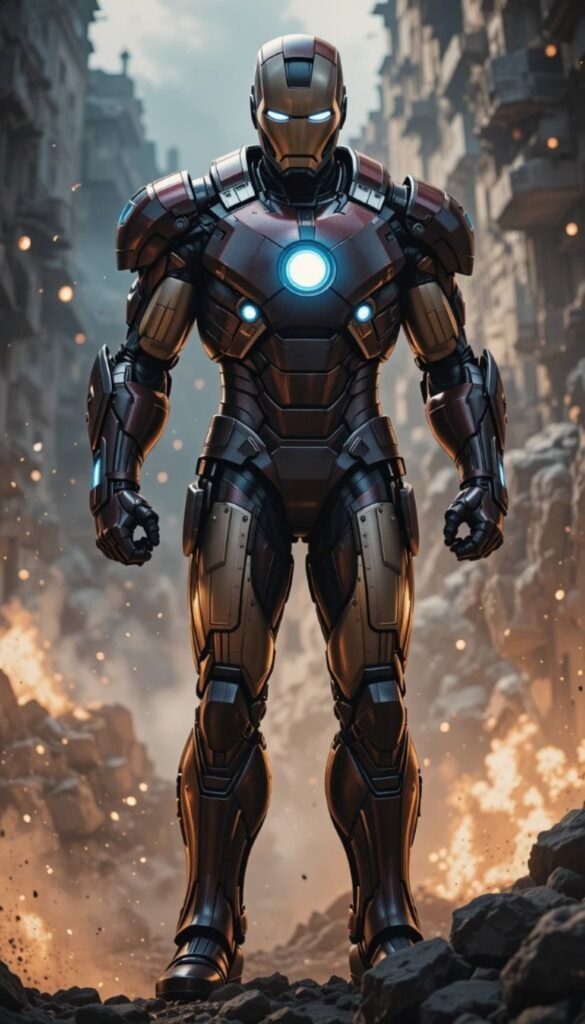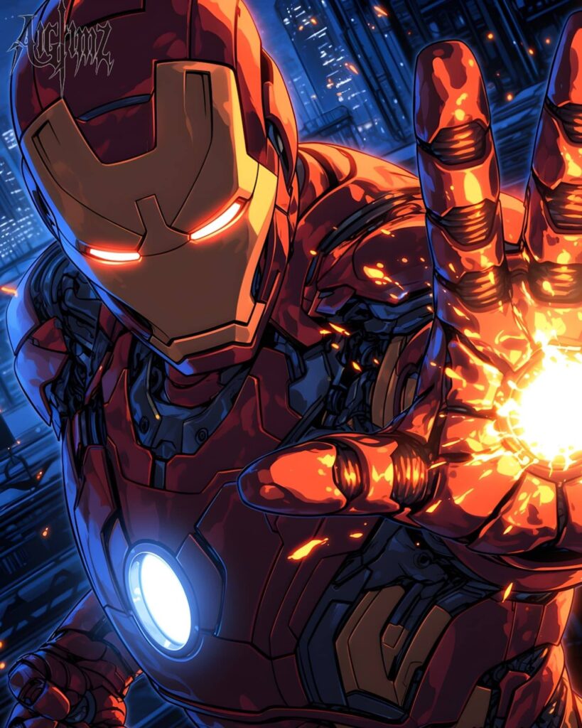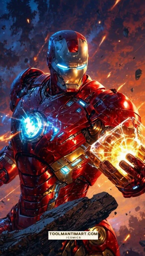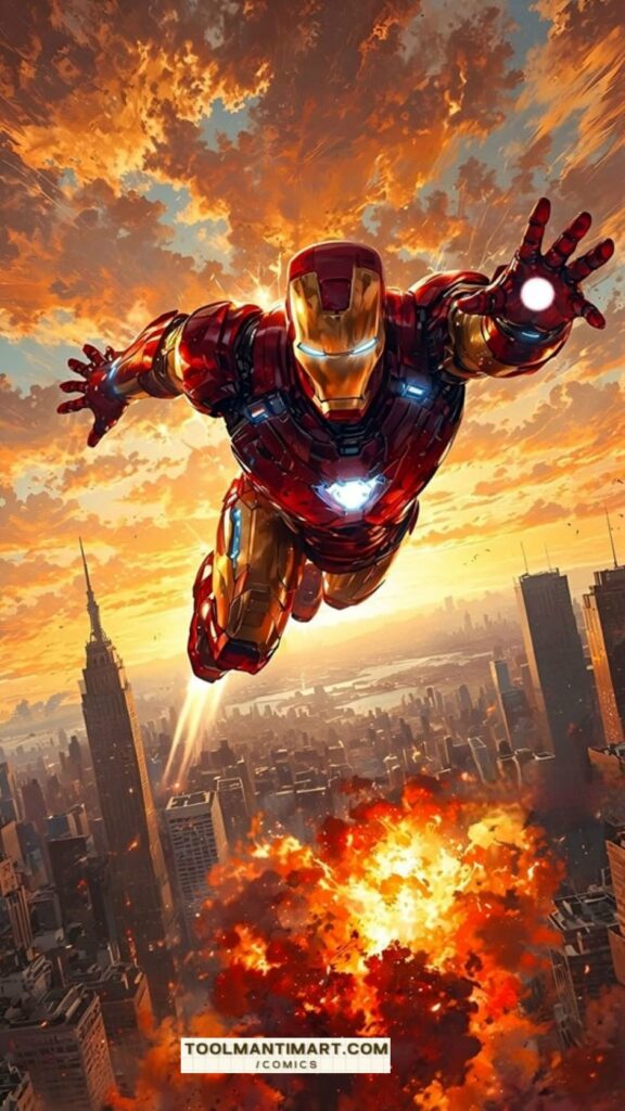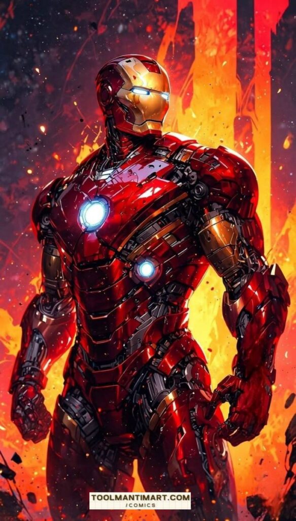 Iron Man is the superhero persona of Anthony Edward “Tony” Stark, a businessman and engineer who runs the weapons manufacturing company Stark Industries. When Stark was captured in a war zone and sustained a severe heart wound, he built his Iron Man armor and escaped his captors. Iron Man’s suits of armor grant him superhuman strength, flight, energy projection, and other abilities. The character was created in response to the Vietnam War as Lee’s attempt to create a likeable pro-war character. Since his creation, Iron Man has been used to explore political themes, with early Iron Man stories being set in the Cold War. The character’s role as a weapons manufacturer proved controversial, and Marvel moved away from geopolitics by the 1970s. Instead, the stories began exploring themes such as civil unrest, technological advancement, corporate espionage, alcoholism, and governmental authority.