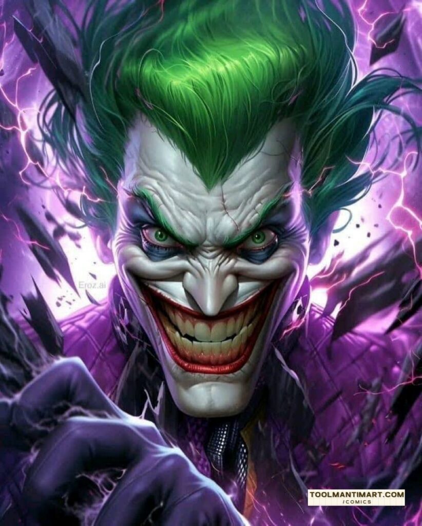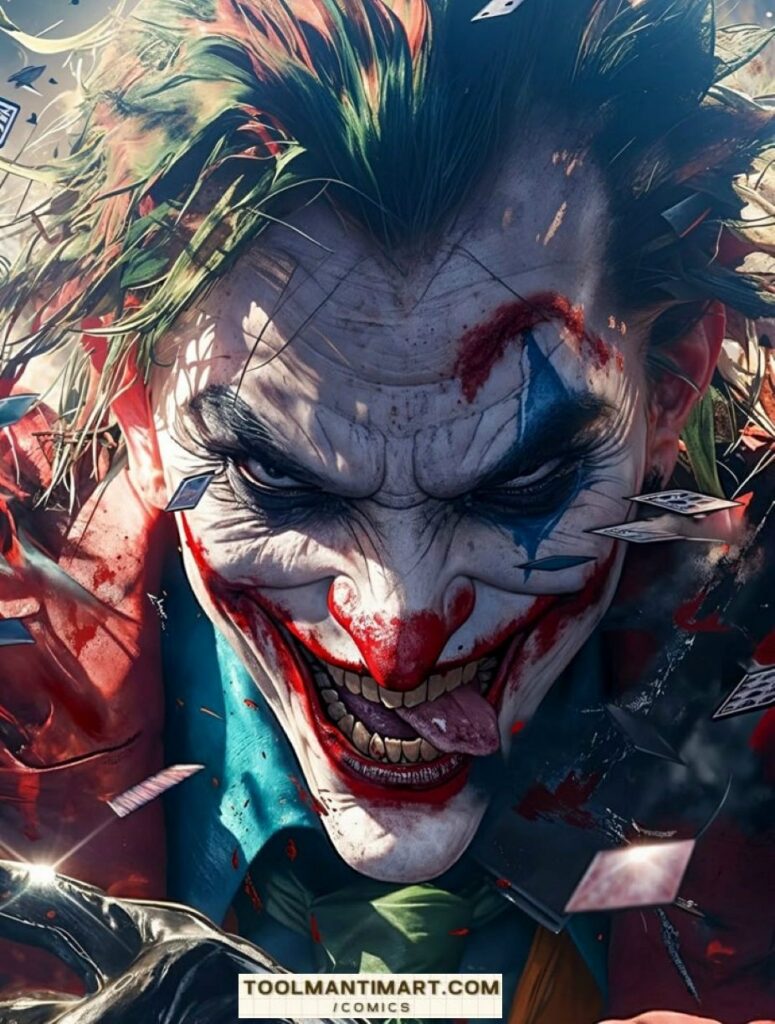 The Joker is a supervillain who appears in American comic books published by DC Comics. He was created by Bill Finger, Bob Kane, and Jerry Robinson, and first appeared in the debut issue of the comic book Batman on April 25, 1940. Credit for the Joker’s creation is disputed; Kane and Robinson claimed responsibility for his design while acknowledging Finger’s writing contribution. Although the Joker was planned to be killed off during his initial appearance, he was spared by editorial intervention, allowing the character to endure as the archenemy of the superhero Batman.