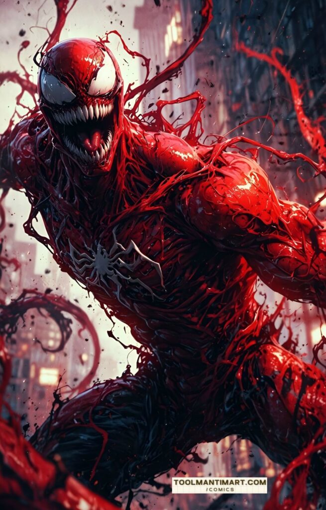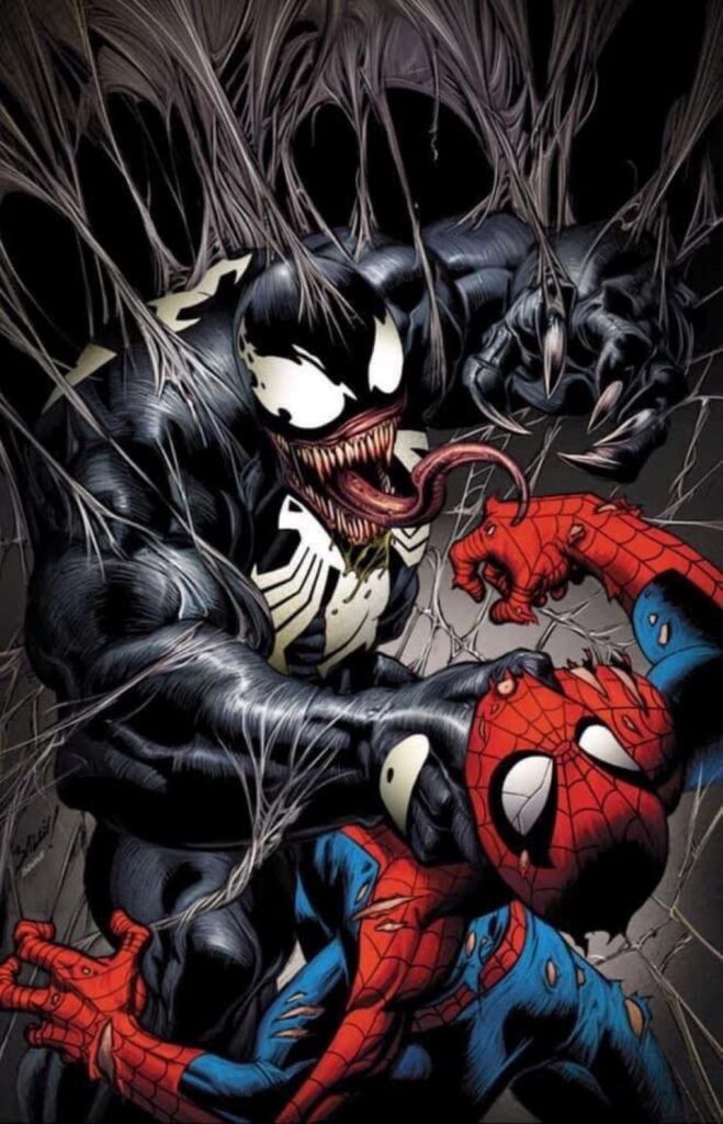 Venom is a character appearing in American comic books published by Marvel Comics. The character is a sentient alien symbiote with an amorphous, liquid-like form, who survives by bonding with a host, usually human. This dual-life form receives enhanced powers and usually refers to itself as “Venom”. The symbiote was originally introduced as a living alien costume in The Amazing Spider-Man #252 (May 1984), with a full first appearance as Venom in The Amazing Spider-Man #300 (May 1988).